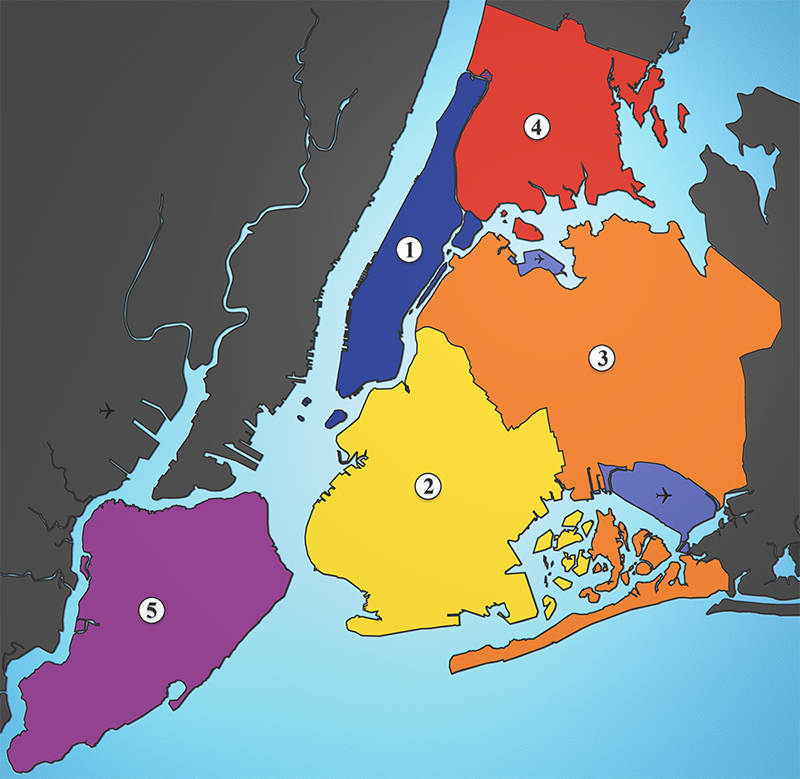The Boroughs of New York City map is based upon a work by Julius Schorzman, licensed under the Creative Commons Attribution ShareAlike 2.5 License.